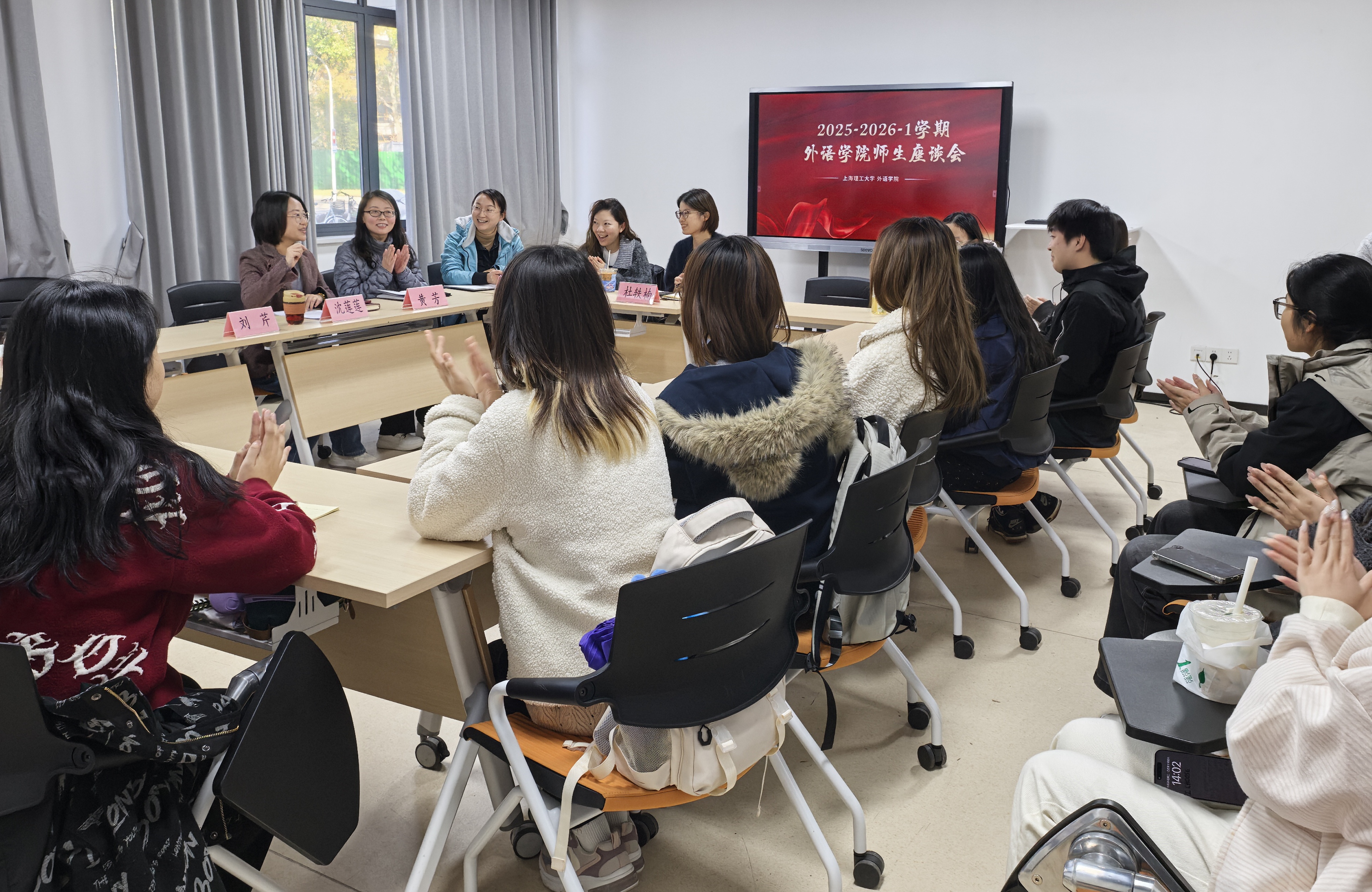 为加强教学信息反馈、进一步提升人才培养质量,11月25日,上海理工大学外语学院举办师生座谈会暨华贞助学奖学金颁奖仪式。院长刘芹,副院长韩戈玲、张乐,各系部主任、教务负责老师、本年度华贞助学奖学金获奖者及2025级各专业新生代表齐聚一堂,参加活动。会议由学院党委副书记沈莲莲主持。