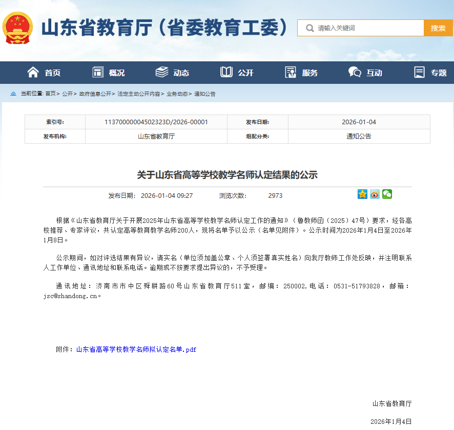 近日,山东省教育厅公布2025年山东省高等学校教学名师认定结果,我校健康科学与工程学院2011届生物医学工程硕士专业校友唐睿入选。